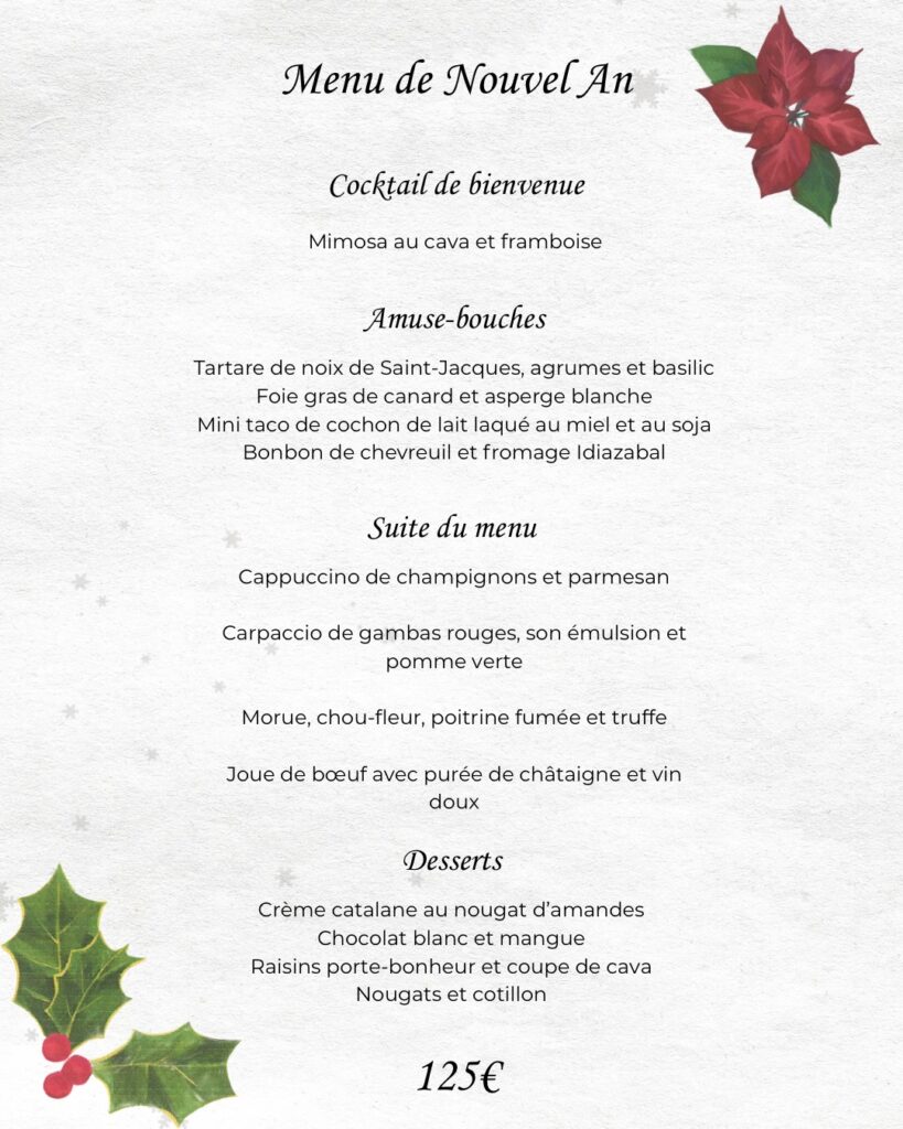 Menu de Nouvel An 2025 – Réservez votre dîner de réveillon du Nouvel An avec nous